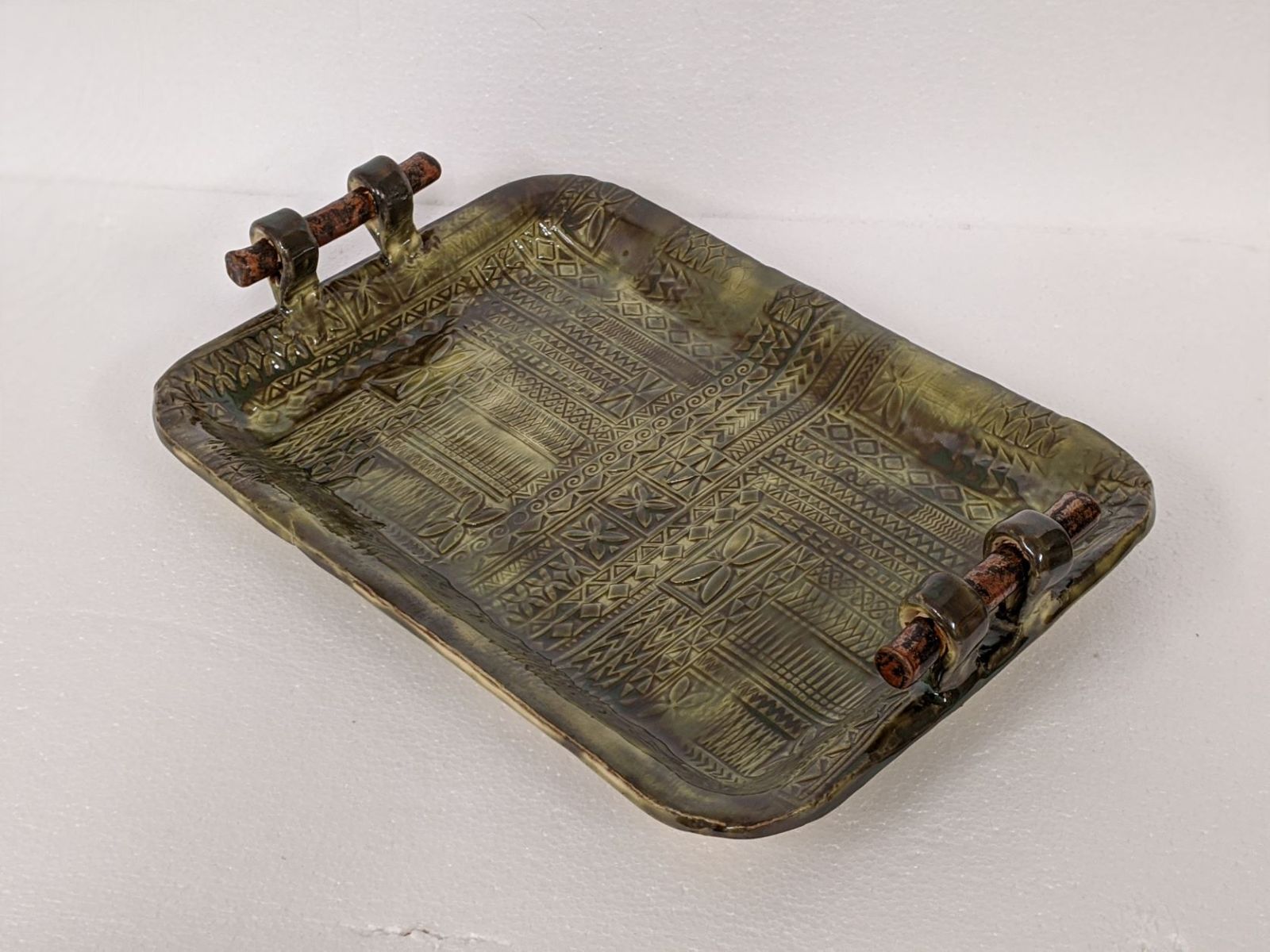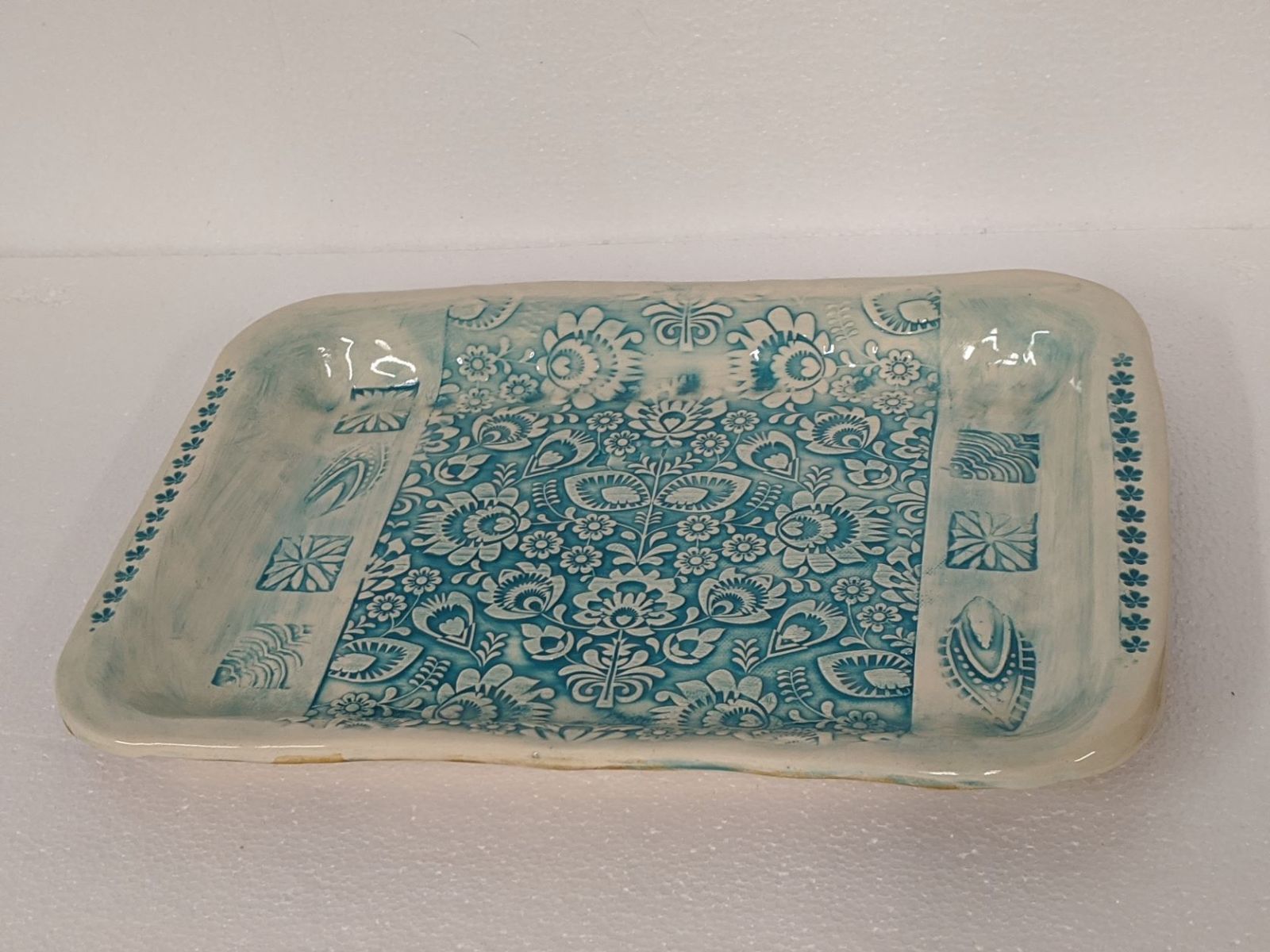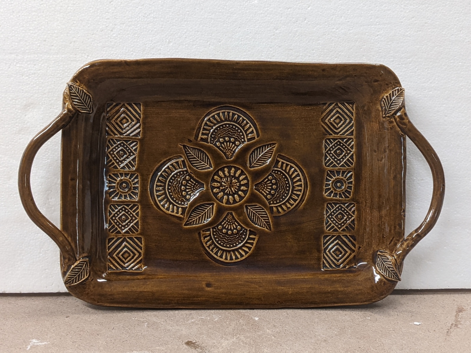 Beautiful and functional…what could be better? Using a mold and a slab of clay, you will make a tray that reflects your own creativity. This is a two day event. The first day we will make the tray, and decorate with stamps to provide texture, or you can use one of the many rolling pins I have with beautiful unique textures. You can add handles…or not. The second day, the following week, you will glaze your tray. The first day will likely take the full two hours as contemplating the many ways to decorate takes time. The second week, when you will glaze your tray, will take around an hour. The tray is dishwasher safe, microwavable, and ovenproof, if protected from thermal shock. The tray is about 12 x 8 by about 1 inch deep.